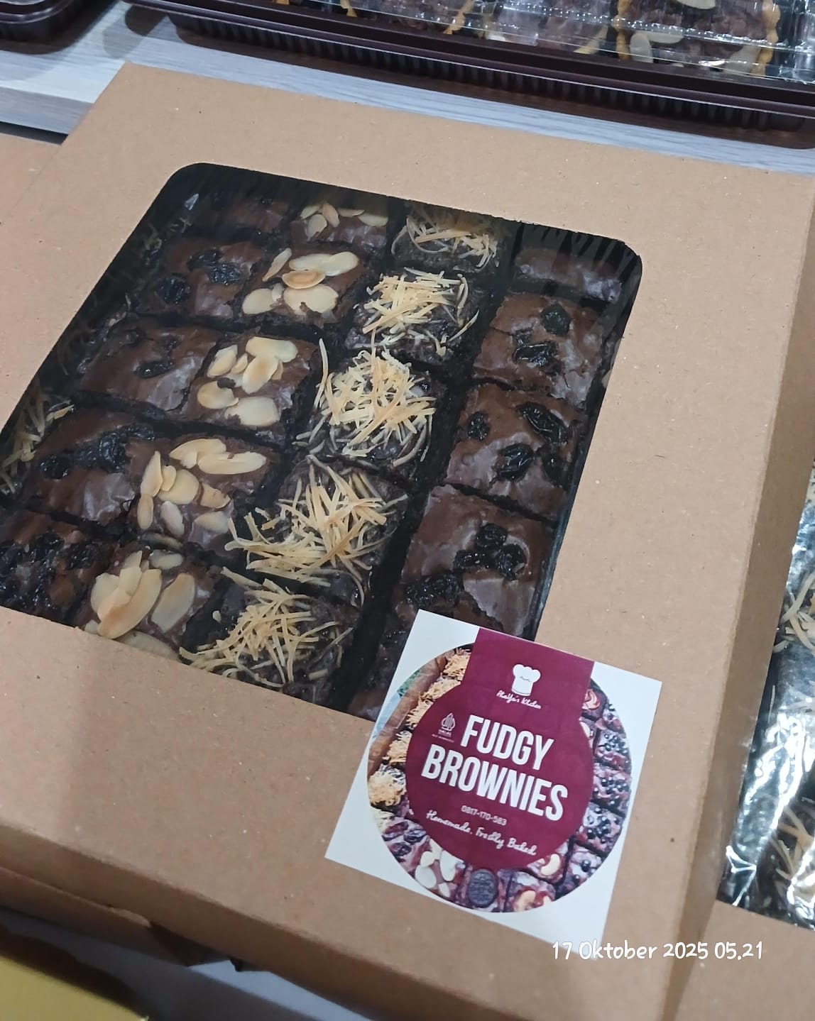 Fudgy Brownies ini dibuat dengan tekstur khas brownies yang lembap, padat, dan kaya cokelat. Setiap potongannya terasa “berat” dan memuaskan, cocok buat pecinta cokelat sejati. Ada variasi topping yang menambah karakter rasa, mulai dari yang creamy, gurih, sampai manis legit, jadi tidak cepat bosan.